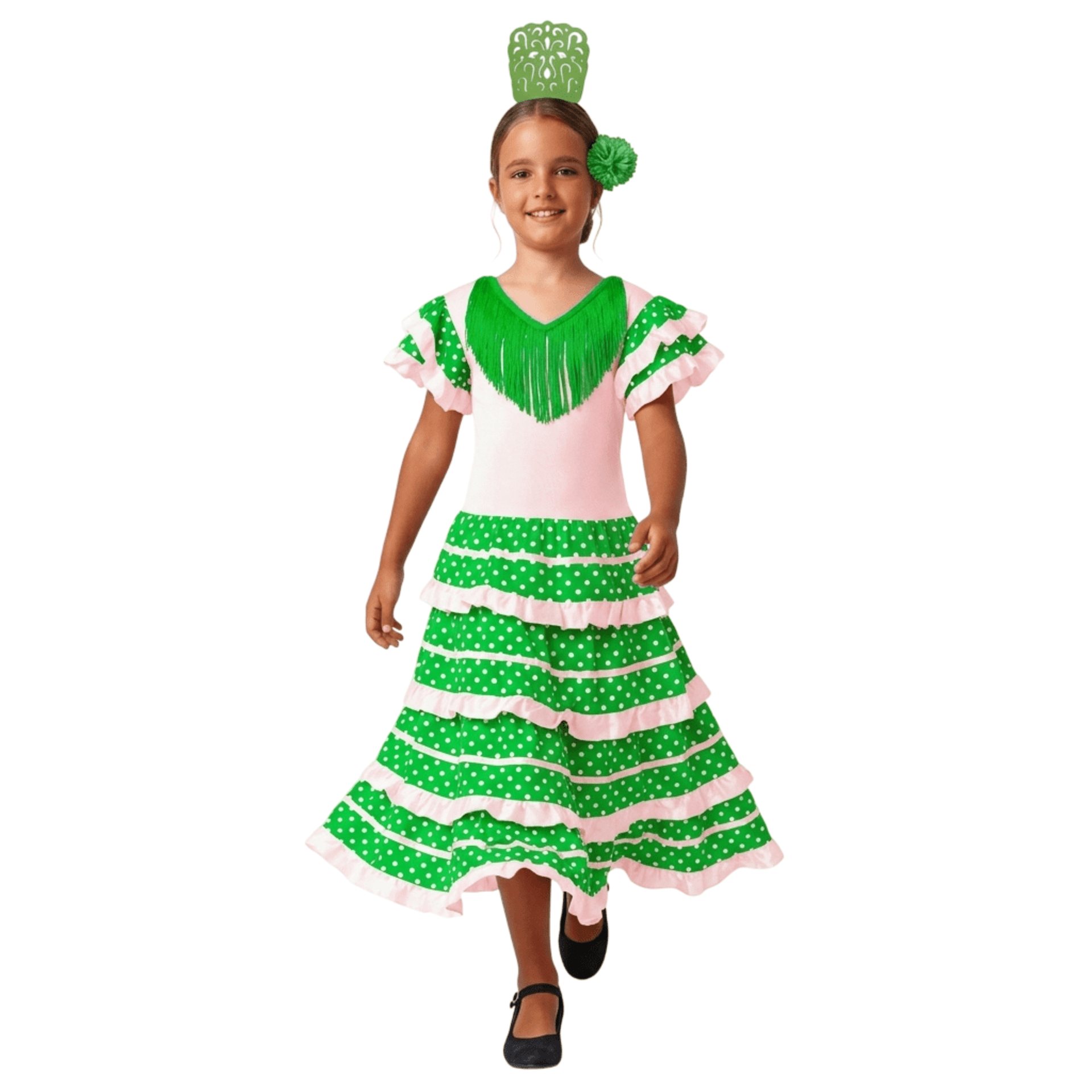 OfertaDisfraz Flamenca Niña Vestido Sevillana con Volantes y Lunares con Peine y Flor14,99 €28,99 €−48%