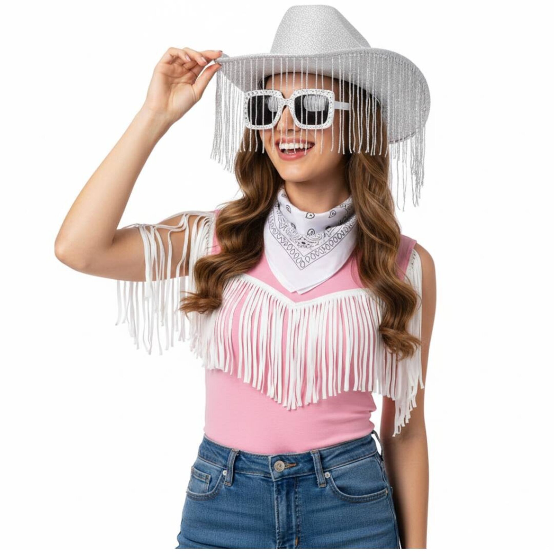 OfertaPack Disfraz Vaquera Premium Adulto: Sombrero Cowgirl con Flecos de Lujo Blanco17,99 €29,99 €−40%